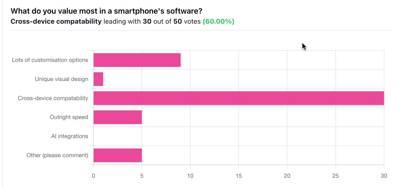 Lots of you (I imagine mainly Apple users) value ecosystem integrations, like I do. And unsurprisingly, no one voted for AI. It makes you wonder just why weβre being served AI thing after AI thing with tech releases when hardly anyone wants it. In that spirit, I give you this weekβs question: